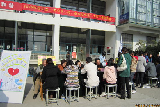 12月2日中午,學(xué)院關(guān)工委與院大學(xué)生心理協(xié)會在思源堂廣場聯(lián)合舉辦了2010年“關(guān)心下一代,情系大學(xué)生”廣場咨詢會。
