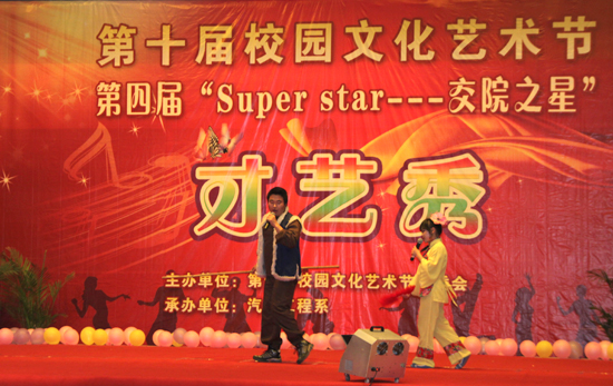 才藝秀活動為汽車工程系承辦,分“閃亮登場”、“才藝大比拼”、“再露一小手”三個環(huán)節(jié)進(jìn)行。比賽全程充滿活力和創(chuàng)意,讓觀眾耳目一新。來自全院七系共14組選手的精彩表演充分展現(xiàn)了當(dāng)代大學(xué)生朝氣蓬勃的精神面貌和交院學(xué)子多才多藝的綜合才能。經(jīng)過兩個多小時的精彩角逐,汽車工程系黃琨鈺同學(xué)等選手榮獲一等獎并當(dāng)選“交院之星”;電子信息工程系選送的李大磊同學(xué)等選手經(jīng)49名大眾評審團(tuán)評選,獲得本次才藝秀“最佳人氣獎”。
