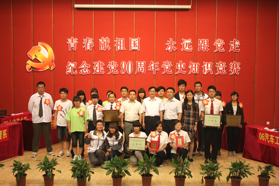 紀(jì)念建黨90周年黨史知識(shí)競(jìng)賽成功舉辦。為迎接建黨90周年,提高青年大學(xué)生黨史知識(shí)的學(xué)習(xí)興趣,加深對(duì)黨的知識(shí)的進(jìn)一步了解,學(xué)院第十屆校園文化藝術(shù)節(jié)之“青春獻(xiàn)祖國(guó),永遠(yuǎn)跟黨走”紀(jì)念建黨90周年黨史知識(shí)競(jìng)賽于6月2日晚在大學(xué)生活動(dòng)中心226報(bào)告廳舉行。院黨委副書記許正林和藝術(shù)節(jié)組委會(huì)成員一同觀看了比賽。比賽由電子信息工程系承辦,分個(gè)人必答題、小組必答題、搶答題、風(fēng)險(xiǎn)題四個(gè)環(huán)節(jié)進(jìn)行。來(lái)自七個(gè)系的選手同臺(tái)角逐,積極搶答,隊(duì)員間相互配合,靈活應(yīng)對(duì),現(xiàn)場(chǎng)氣氛十分熱烈。最終,電子信息工程系代表隊(duì)獲得一等獎(jiǎng),人文藝術(shù)系和運(yùn)輸管理系分獲二、三等獎(jiǎng),建筑工程系、機(jī)電工程系、汽車工程系、路橋系獲得優(yōu)秀獎(jiǎng)。人文藝術(shù)系孫珊珊和電子信息工程系譚雪、李曼曼三位同學(xué)獲得了優(yōu)秀選手獎(jiǎng)。