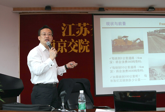 在近兩個小時的報告中,施偉斌先生詳細(xì)闡述了我國公路行業(yè)發(fā)展現(xiàn)狀及養(yǎng)護市場的廣闊前景,國內(nèi)外養(yǎng)護技術(shù)簡介及發(fā)展趨勢預(yù)測,介紹了目前世界上最先進(jìn)的公路養(yǎng)護技術(shù)——英達(dá)就地?zé)嵩偕夹g(shù)和公路養(yǎng)護市場迅猛發(fā)展帶來的人才緊缺問題及解決辦法。報告內(nèi)容豐富、深入淺出,無論是科研思路、企業(yè)管理方法,還是具體的人生仕途規(guī)劃等問題,均給人以啟發(fā)和思考。報告會上,與會師生還就自己感興趣的問題與施偉斌先生進(jìn)行了深入交流和探討。