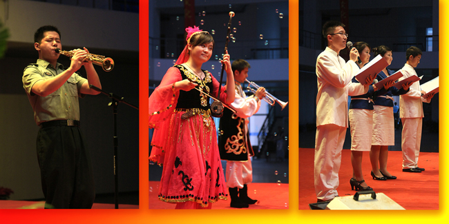 晚會在氣勢恢宏的大合唱《走向復(fù)興》歌聲中拉開帷幕。我院軍民共建單位舟橋旅部隊(duì)演出隊(duì)參加演出活動并帶來了精彩節(jié)目。全體院領(lǐng)導(dǎo)的小合唱《革命人永遠(yuǎn)是年輕》受到師生的熱烈響應(yīng)。整臺演出突出“紅色”主基調(diào),學(xué)院師生和部隊(duì)官兵以歌舞、樂器演奏、詩朗誦、大合唱等多種形式,盡情歡唱,抒發(fā)對中國共產(chǎn)黨的真摯情懷,充分展示了學(xué)院教職員工團(tuán)結(jié)進(jìn)取、愛崗敬業(yè)、創(chuàng)先爭優(yōu)的精神面貌,把我院慶祝建黨90周年各項(xiàng)活動推向了高潮。