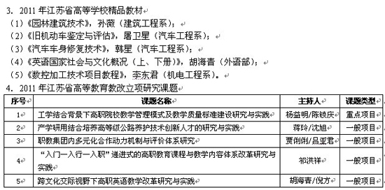 近期,省教育廳公布了2011年高等學(xué)校優(yōu)秀多媒體課件、大學(xué)生實(shí)踐創(chuàng)新訓(xùn)練計(jì)劃、高等學(xué)校精品教材、省教改課題等評(píng)審結(jié)果,學(xué)院收獲頗豐,共獲得省級(jí)優(yōu)秀多媒體課件2件,大學(xué)生實(shí)踐創(chuàng)新訓(xùn)練計(jì)劃項(xiàng)目15項(xiàng),精品教材5部,省教改課題5項(xiàng)。具體是: