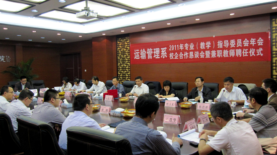 9月25日,運輸管理系舉行2011年專業(yè)(教學)指導委員會年會暨校企合作懇談會。學院副院長高進軍出席年會開幕儀式。來自江蘇省交通運輸廳運輸管理局、東南大學、江蘇省交通科學研究院《現(xiàn)代交通技術(shù)》編輯部、南京國際貨運代理協(xié)會、招商局物流集團南京有限公司、江蘇快鹿汽車運輸服務(wù)有限公司、蘇寧電器股份有限公司、南京永順會計事務(wù)所有限公司等20家單位的38位專家、學者,以及學院人事處、科產(chǎn)處、校企合作辦負責人和運輸管理系相關(guān)人員等參加了會議。