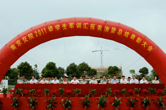 9月26日上午,學(xué)院2011級新生軍訓(xùn)成果匯報表演暨總結(jié)表彰大會在田徑場隆重舉行。承訓(xùn)部隊金宏上校、王啟林中校,學(xué)院黨委書記賈俐俐,院長張毅,院黨委副書記、軍訓(xùn)工作領(lǐng)導(dǎo)小組組長許正林,副院長周傳林,紀委書記應(yīng)海寧,副院級調(diào)研員陳玉龍等領(lǐng)導(dǎo)出席大會,軍訓(xùn)工作領(lǐng)導(dǎo)小組、軍訓(xùn)團全體成員、承訓(xùn)部隊72名教官以及3100余名參訓(xùn)新生參加了大會。大會由學(xué)院武裝部部長、軍訓(xùn)團政委祁國新主持。