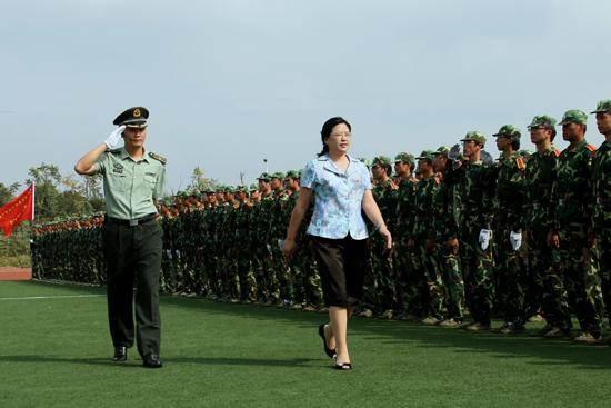 在雄壯的進行曲中,院黨委書記賈俐俐在承訓(xùn)部隊教導(dǎo)隊協(xié)理員孫金林的陪同下檢閱了受訓(xùn)學(xué)生方隊。