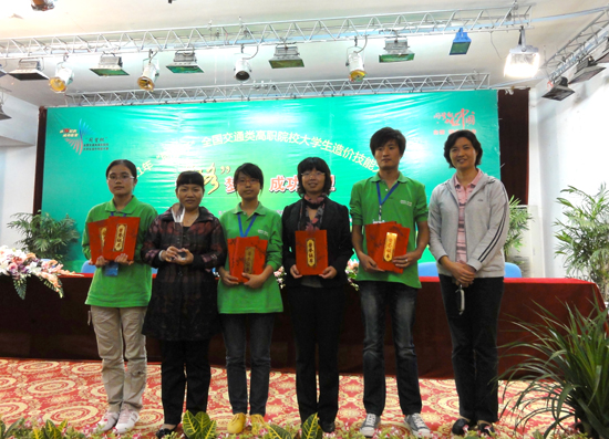 由交通職業(yè)教育教學(xué)指導(dǎo)委員會(huì)主辦的2011年“同望杯”全國交通類高職院校大學(xué)生造價(jià)技能大賽,于2011年10月12日—14日在四川舉行。共有來自全國27所交通類高職院校的84名選手參與比賽,學(xué)院代表隊(duì)在路橋工程系蔣玲主任、羅云軍和張海霞老師帶領(lǐng)下,唐浩、張宏飛、陳莉三名學(xué)生參加了理論、實(shí)踐操作比賽,并獲得團(tuán)體二等獎(jiǎng)、個(gè)人理論考核一等獎(jiǎng)2項(xiàng)、實(shí)踐操作二等獎(jiǎng)1項(xiàng)和三等獎(jiǎng)1項(xiàng);個(gè)人全能(理論加實(shí)踐操作)一等獎(jiǎng)1項(xiàng)、二等級(jí)1項(xiàng),三等獎(jiǎng)1項(xiàng)。