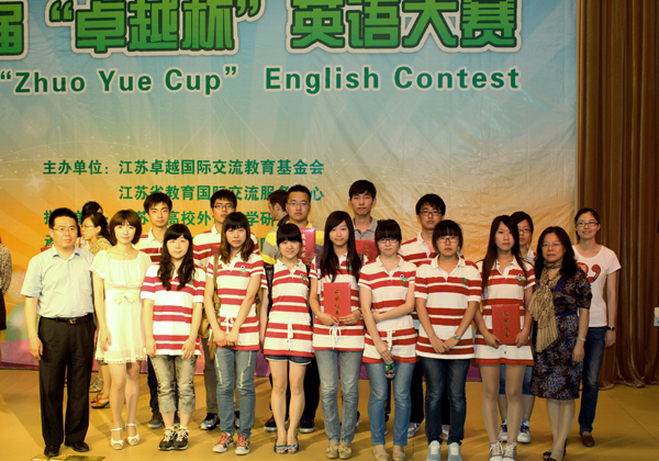 在6月8日上午由江蘇卓越國際交流教育基金會和江蘇省教育國際交流服務(wù)中心主辦的第二屆“卓越杯”英語大賽決賽中,國際教育學(xué)院海本項目2010級張偉、陳云杰、戴帆三名同學(xué)榮獲二等獲,4名選手獲得三等獎,6名選手獲得優(yōu)秀鼓勵獎。他們分別獲得由卓越交流基金會提供的2000元、1000元和500元卓越留學(xué)獎學(xué)金。
