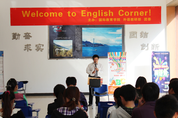 10月17日下午,由國際教育學(xué)院、外語部、團(tuán)委聯(lián)合主辦的本學(xué)期英語角活動在明德樓一樓大廳拉開序幕。