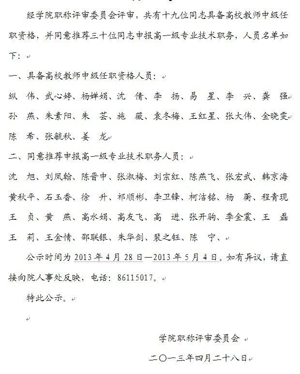 職稱評審公示