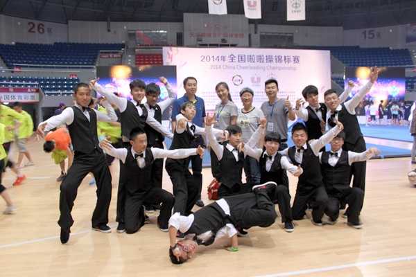 2014年全國啦啦操錦標(biāo)賽于5月23至25日在溧陽市天目湖城市廣場體育館舉行。本次比賽分為幼兒組、小學(xué)組、中學(xué)組、大學(xué)組、俱樂部組5個(gè)競賽組別,共有85個(gè)學(xué)校,2137人參加比賽。我校啦啦操代表隊(duì)在參加大學(xué)甲組集體街舞自選動作的比賽中榮獲第一名。