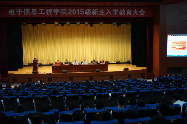 9月14日上午,電子信息工程學(xué)院2015級(jí)新生入學(xué)教育大會(huì)在圖書館一樓報(bào)告廳隆重舉行。院長(zhǎng)吳兆明、黨總支副書記張守磊、副院長(zhǎng)張鸰,全體輔導(dǎo)員、2015級(jí)班主任以及2015級(jí)全體新生參加了會(huì)議。