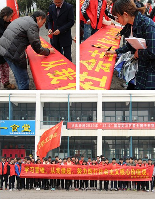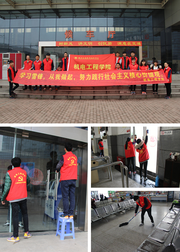 3月3日中午,機(jī)電工程學(xué)院在思源堂廣場(chǎng)舉辦了“學(xué)習(xí)雷鋒,從我做起,努力踐行社會(huì)主義核心價(jià)值觀”的簽名活動(dòng),宣揚(yáng)雷鋒精神。3月4日上午,16名志愿者來(lái)到江寧客運(yùn)站,進(jìn)行美化客運(yùn)站清潔服務(wù)活動(dòng)。全體團(tuán)員青年在踐行社會(huì)主義核心價(jià)值觀的志愿服務(wù)中得到了鍛煉和教育,展現(xiàn)了青年學(xué)子心系社會(huì)、樂(lè)于奉獻(xiàn)的良好精神面貌和道德品質(zhì)。