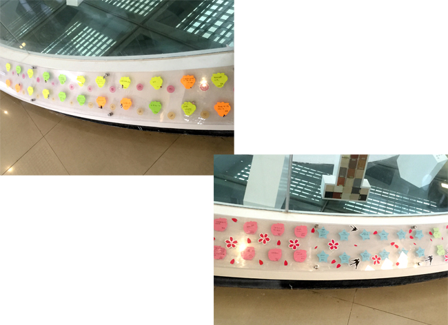 人文藝術(shù)團(tuán)總支組織各團(tuán)支部青年把自己的青春夢(mèng)想記錄在精美的便利貼上,將這些美好的夢(mèng)想展示在明德樓二樓中廳的夢(mèng)想展示板上。在校的三年,每天清晨上課,同學(xué)們都能看到自己定下的目標(biāo),天天都會(huì)提醒自己要為夢(mèng)想而奮斗,思考自己今天要做什么;每天傍晚下課,再看看自己的目標(biāo),總結(jié)自己今天做了什么。青年學(xué)子們將自己的夢(mèng)想置于陽光之下,互相借鑒,互相激勵(lì)。