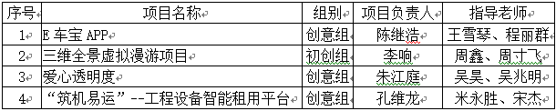 根據(jù)《學(xué)院關(guān)于遴選第二屆中國(guó)“互聯(lián)網(wǎng)+”大學(xué)生創(chuàng)新創(chuàng)業(yè)大賽“建行杯”江蘇省選拔賽參賽項(xiàng)目的通知》精神,經(jīng)學(xué)生申報(bào),教務(wù)處、學(xué)工處聯(lián)合組織專家評(píng)審,共遴選出4個(gè)項(xiàng)目參加江蘇省第五屆大學(xué)生創(chuàng)新創(chuàng)業(yè)大賽,名單如下: