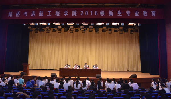 9月11日下午,路橋與港航工程學院在圖書館報告廳舉行2016級新生入學教育。路橋與港航工程學院全體領導、教研室主任、輔導員、新生班主任、主要學生干部以及來自全國12個民族的745名新同學參加了入學教育大會。入學教育大會分入學專業(yè)教育和行為教育、師生互動兩個環(huán)節(jié)。