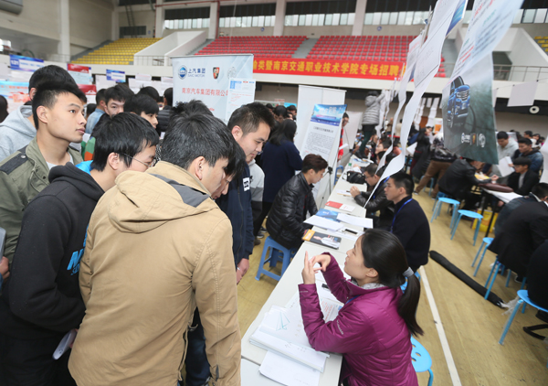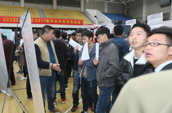 11月9日,江蘇省2017屆百校聯(lián)動就業(yè)活動——江蘇省2017屆運輸類暨南京交通職業(yè)技術(shù)學(xué)院專場招聘會在行健館舉行。汽車工程學(xué)院組織53家用人單位參會,包括蘇汽客運集團等國有企業(yè),保時捷、奔馳等高端品牌汽車服務(wù)公司和南汽等汽車生產(chǎn)廠家。招聘會現(xiàn)場提供了約1100個崗位,涵蓋了汽車維修、汽車美容、鈑金噴漆、汽車銷售、服務(wù)顧問、查勘定損、二手車銷售等崗位,專業(yè)對口率100%。