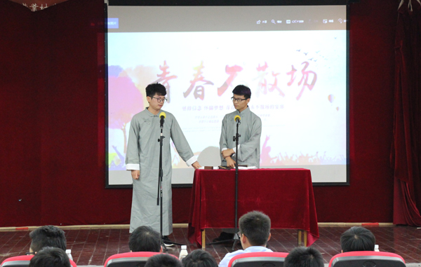 晚會(huì)開始前,學(xué)弟學(xué)妹們精心制作的畢業(yè)祝福視頻深深感動(dòng)了在場的每位畢業(yè)生。晚會(huì)在動(dòng)感活力的舞蹈中拉開序幕,小品《拳擊社》、《甄嬛后傳》,合唱《不說再見》,歌曲《那些年》、《夏洛克的煩惱》,相聲《白蛇傳》,舞蹈《淋雨一直走》,話劇《大學(xué)三年》、《寢室生活》等節(jié)目各具特色、精彩紛呈。現(xiàn)場笑聲掌聲不斷,2017屆畢業(yè)生們重溫了在校三年的點(diǎn)點(diǎn)滴滴,用歡笑向自己三年的大學(xué)生涯告別,帶著滿滿的回憶開始新的旅程。