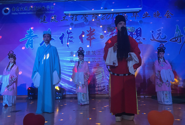 晚會(huì)伊始,大家觀看了同學(xué)們制作的畢業(yè)生歡送短片,一起回顧了一路走來(lái)的三年大學(xué)時(shí)光,見(jiàn)證了自己的成長(zhǎng)點(diǎn)滴。晚會(huì)以熱舞《她很漂亮》開(kāi)場(chǎng),膾炙人口的歌曲、幽默的小品《兄弟別鬧》、《涼涼》、經(jīng)典的國(guó)粹《打嚴(yán)嵩》、《人情冷暖太可恨》、《賢弟抬頭來(lái)觀瞧》,激情的爵士舞《BangBang》、飽含深情的詩(shī)朗誦《我們一起走過(guò)的青春》,讓現(xiàn)場(chǎng)師生沉浸在滿滿的感動(dòng)之中。晚會(huì)在合唱《當(dāng)》的歌聲中結(jié)束,畢業(yè)生們久久不愿離去,享受著他們?cè)谛5淖詈笠淮螝g聚。