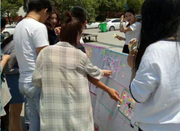 展覽在思源堂廣場(chǎng)舉辦,參展的優(yōu)秀設(shè)計(jì)作品均由全院參賽的100多份作品中遴選而出。設(shè)計(jì)大賽采用線(xiàn)上線(xiàn)下的評(píng)比方式,通過(guò)現(xiàn)場(chǎng)展覽及開(kāi)辟微信公眾平臺(tái)專(zhuān)欄接受大眾投票。雖然展覽當(dāng)天烈日當(dāng)空,但富有創(chuàng)意的作品仍然吸引了眾多師生駐足觀看,大家紛紛拿起小貼士為各自心目中的NO.1投上寶貴的一票。經(jīng)過(guò)評(píng)比,161035班丁文佳獲得一等獎(jiǎng),161012班茍彥龍等三人獲得二等獎(jiǎng),161031班曹夢(mèng)清等三人獲得三等獎(jiǎng)。