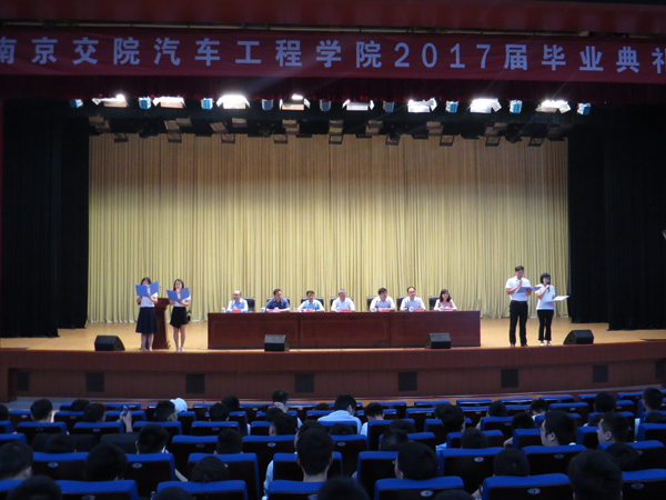 畢業(yè)典禮伊始,畢業(yè)生領(lǐng)取了畢業(yè)紀(jì)念品“汽車醫(yī)生”徽章。9時整,與會人員共同觀看了《畢業(yè)快樂》視頻短片,共同回首在南京交院學(xué)習(xí)生活的三年。
