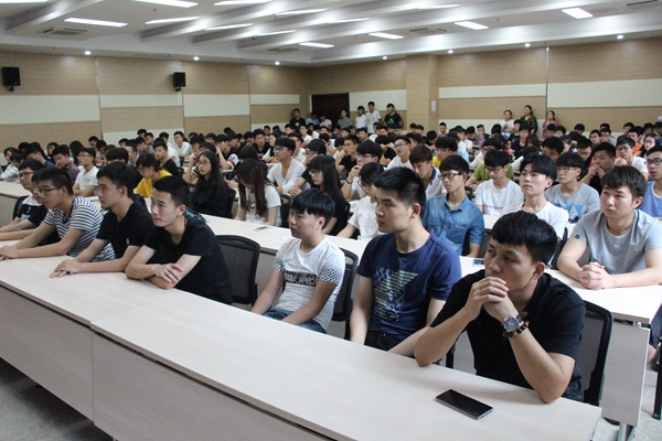 上海宏信設(shè)備工程有限公司相關(guān)負責(zé)人從工程機械租賃行業(yè)發(fā)展到公司概況、發(fā)展歷程、服務(wù)理念、市場地位作了詳細介紹,對2017年“宏信設(shè)備訂單班”的招生要求,課程安排,招聘流程以及公司的福利待遇等問題作了推介。徐明威、陳廣亮學(xué)長分別向同學(xué)們介紹了自己進入宏信后的工作歷程。
