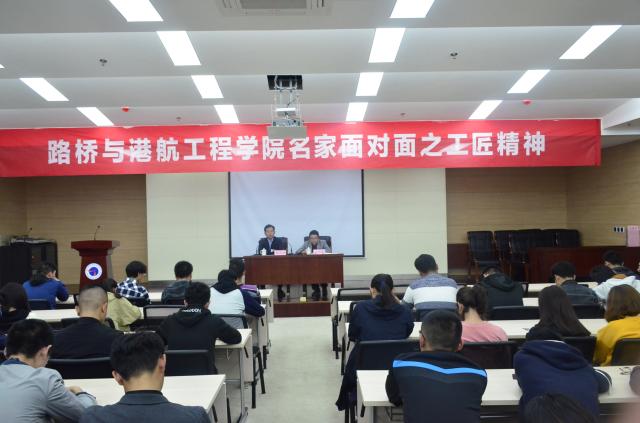 10月28日下午,路橋與港航工程學(xué)院舉行名家面對面之工匠精神講座。中國人民解放軍5311廠的高級技師、全國勞動模范程軍榮擔任主講。黨總支副書記彭涌濤主持講座,16、17級學(xué)生現(xiàn)場聆聽。