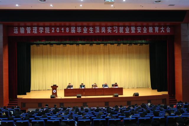 11月22日下午,運輸管理學(xué)院2018屆畢業(yè)生頂崗實習(xí)動員暨安全教育大會在校圖書館報告廳召開。校保衛(wèi)處副處級干部祁國新,運輸管理學(xué)院全體負(fù)責(zé)人、各教研室(部門)負(fù)責(zé)人、畢業(yè)班班主任、全體輔導(dǎo)員和參加頂崗實習(xí)的586名學(xué)生參加了大會,會議由運輸管理學(xué)院黨總支副書記朱素陽副主持。