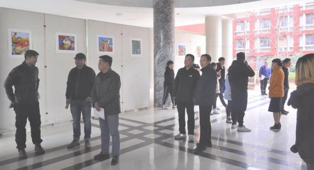 近日,人文藝術(shù)系2017級同學(xué)校外寫生暨二維課業(yè)展在明德樓一樓大廳開展。副院長楊益明、黨委宣傳部部長李國之及人文藝術(shù)系師生一起參觀了展覽。