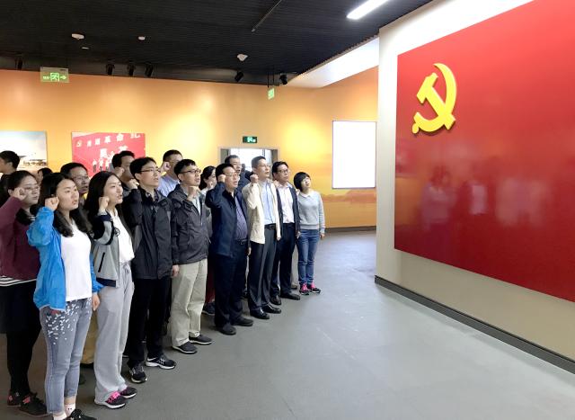 在紀(jì)念館宣誓墻前鮮艷的黨旗下,“我志愿加入中國共產(chǎn)黨,擁護(hù)黨的綱領(lǐng),遵守黨的章程,履行黨員義務(wù)……永不叛黨?!币痪渚淝f嚴(yán)的承諾和錚錚誓詞鏗鏘有力。全體黨員右手握拳,面對黨旗,重溫了入黨誓詞,回憶了入黨時的滿腔激情和崇高追求,接受了一次深刻的精神洗禮。