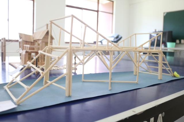 比賽吸引了眾多同學(xué)參加,初賽報(bào)名者有四十人,經(jīng)過層層篩選,5組同學(xué)進(jìn)入決賽。參賽的5件模型作品結(jié)構(gòu)清晰,外觀整潔,各具特色。選手們在設(shè)計(jì)模型時(shí),運(yùn)用了工程力學(xué)的知識,使橋梁模型不僅有耐看的外觀,并且具有較好的承載力,展現(xiàn)了活動的初衷和內(nèi)涵。
