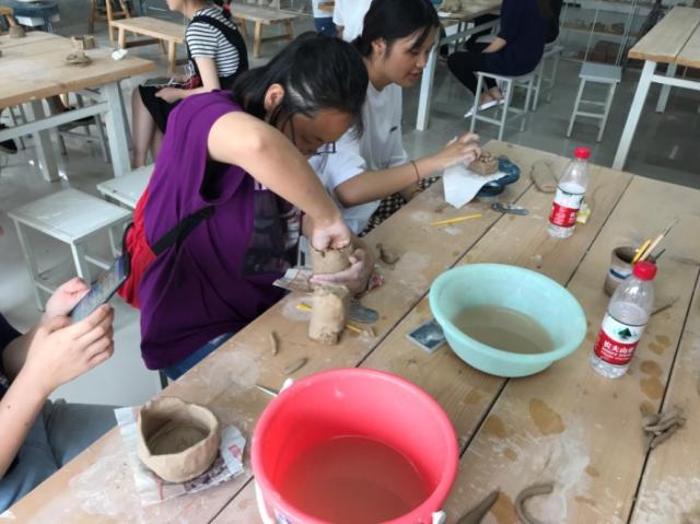 陶藝制作本身富有的趣味性吸引了三十余名學(xué)生踴躍報名?;顒臃譃榕咛ブ谱鳌⑸仙珶傻拳h(huán)節(jié)?;顒舆^程中,學(xué)生們在指導(dǎo)老師的幫助下,充分發(fā)揮自己的創(chuàng)造力,用奇幻的思想和靈巧的雙手制作出一個個精致的陶藝作品。