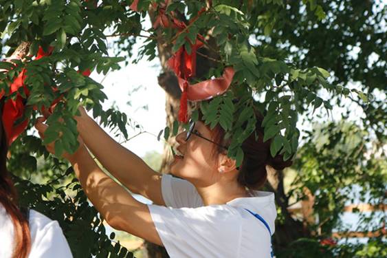 村莊里有一顆古樹,村里人稱為“祈福樹”。村中長者提到這顆老槐樹,對(duì)于它的傳說娓娓道來。樹下有一位老人告訴實(shí)踐隊(duì)員,這棵樹發(fā)現(xiàn)于明朝洪武年間,相傳樹下曾出現(xiàn)了一位白須世外高人,他告訴村民:此槐樹可謂神樹,需要敬之。