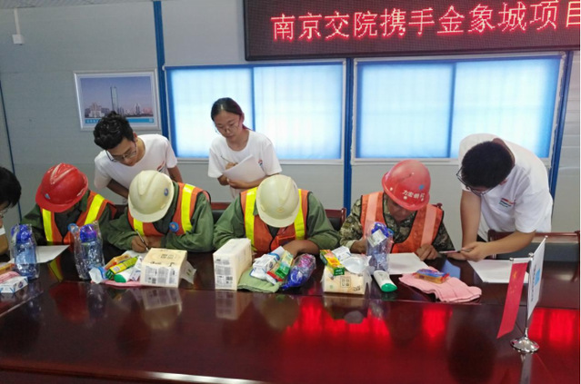 通過實(shí)地調(diào)研城鎮(zhèn)居民以及工地建筑工人,深入了解國家政策對房建項(xiàng)目的影響,并進(jìn)一步了解房建現(xiàn)狀、存在的問題,研究其問題解決的途徑。在金象工地開展調(diào)查后,還向農(nóng)民工發(fā)放了慰問品。關(guān)愛農(nóng)民工,共建和諧工地,讓他們在炎炎夏日,感受到一抹清涼。
