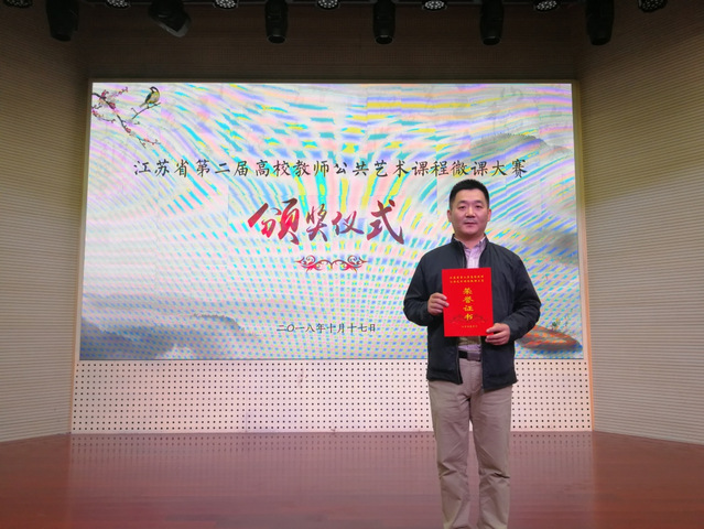 10月17日,由江蘇省教育廳主辦的省第二屆高校教師公共藝術課程微課大賽決賽在南京農業(yè)大學舉行。省教育廳副廳長朱衛(wèi)國、南京農業(yè)大學黨委書記陳利根、省教育廳體衛(wèi)藝處處長張鯉鯉出席頒獎儀式并為獲獎選手頒獎。我系教師獲得??平M一等獎。