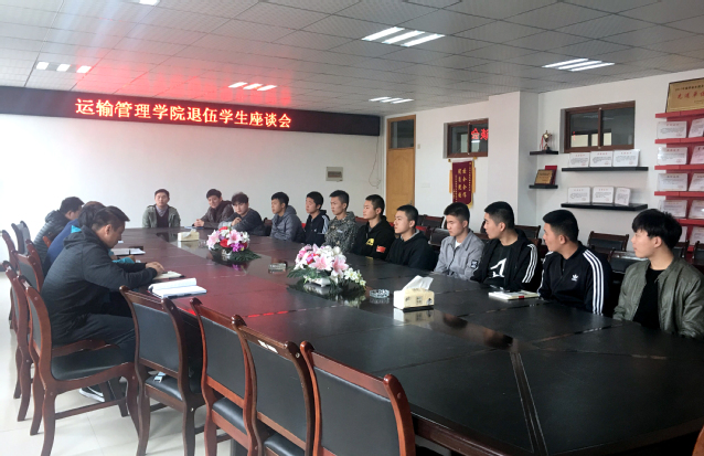 11月15日下午,運(yùn)輸管理學(xué)院召開了退伍返校大學(xué)生士兵座談會(huì)。黨總支書記王艷梅,校武裝部王紅星老師,學(xué)工辦吳蓉蓉老師、馬曉雷老師及近三年退伍復(fù)學(xué)大學(xué)生參加了座談。會(huì)議由黨總支葛明亮副書記主持。
