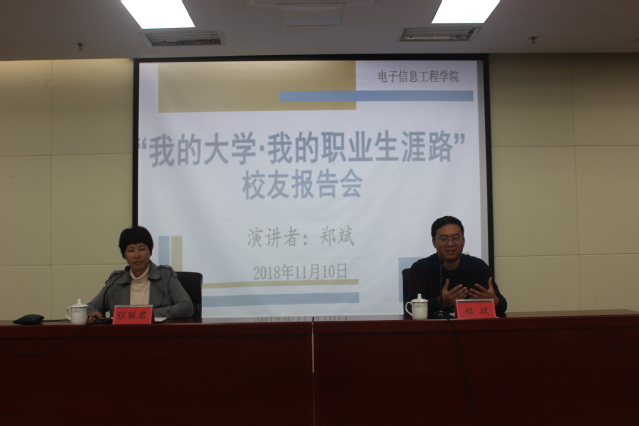 2018年11月10日,電子信息工程學(xué)院在圖書(shū)館B203舉行了“我的大學(xué),我的職業(yè)生涯路”優(yōu)秀校友報(bào)告會(huì)。此次報(bào)告會(huì)邀請(qǐng)了我院2005級(jí)校友、南京凱基特電氣有限公司總經(jīng)理鄭斌主講,他與在校生一起回憶了三年的大學(xué)學(xué)習(xí)生活,以及創(chuàng)業(yè)的艱辛奮斗歷程。