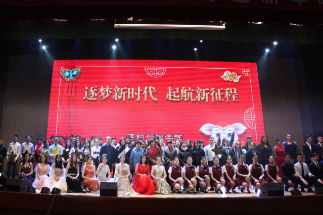“踏著青春奏響的節(jié)拍,用激昂的活力書寫又一個(gè)春天的精彩”!在主持人熱情飽滿的祝詞下,12月27日18:00點(diǎn),以“逐夢新時(shí)代,起航新征程”為主題的迎新晚會(huì)于圖書館一樓報(bào)告廳精彩上演。全體院領(lǐng)導(dǎo)、各教研室主任及輔導(dǎo)員、班主任老師與運(yùn)管學(xué)子歡聚一堂,一起喜迎新春,相約2019?!坝⒎颉眲?lì)志獎(jiǎng)學(xué)金捐資人代表、關(guān)工委老同志代表也受邀蒞臨晚會(huì)現(xiàn)場,送上他們對青年學(xué)子的殷切期望和濃濃祝福。