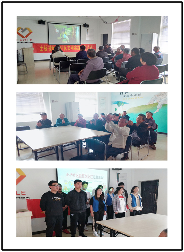 在社區(qū)人家,志愿者們給老人們普及了防騙防火的知識和常見的護理問題,表演了精心準備的節(jié)目:廣場舞《小蘋果》、相聲表演、戲劇展演和歌曲演唱《明天會更好》。