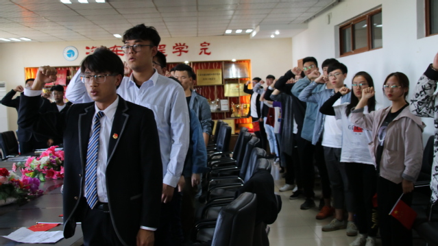 隨后參會青年團(tuán)員重溫了入團(tuán)誓詞,集體合唱《我和我的祖國》。