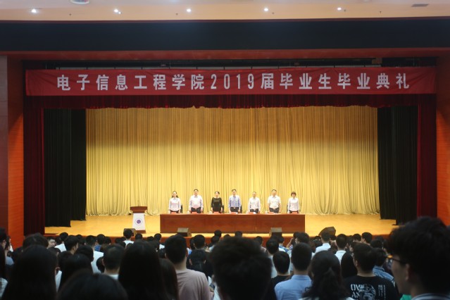 5月17日上午,電子信息工程學院2019屆畢業(yè)生畢業(yè)典禮在圖書館報告廳隆重舉行。學校應海寧副院長、學工處康建軍處長、教務處劉曉華副處長、電子信息工程學院全體院領導出席,院教研室主任、教師代表、畢業(yè)班班主任、輔導員、2019屆全體畢業(yè)生參加了典禮。典禮由電子信息工程學院院長吳兆明主持。