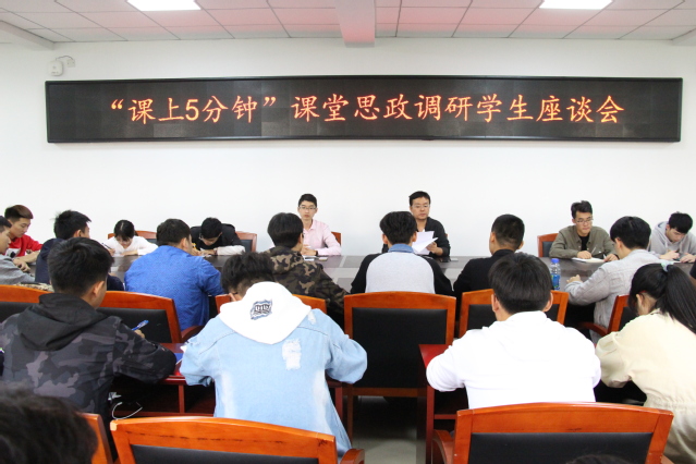 10月16日下午,學院分組召開了“課上5分鐘”課堂思政調(diào)研教師和學生座談會。座談會上,全院師生對于“課上5分鐘”課堂思政教育好的做法,遇到的困難和問題以及需要學校、學院給予的幫助,開展了積極發(fā)言,為調(diào)查研究提供了寶貴的建議。