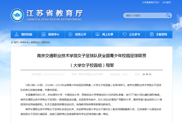 【江蘇省教育廳】南京交通職業(yè)技術(shù)學(xué)院女子足球隊(duì)獲全國(guó)青少年校園足球聯(lián)賽(大學(xué)女子校園組)冠軍