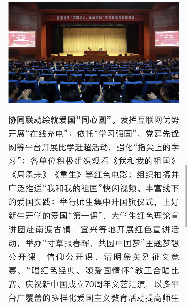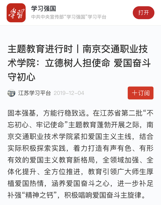 【學習強國】主題教育進行時|南京交通職業(yè)技術學院:立德樹人擔使命 愛國奮斗守初心
