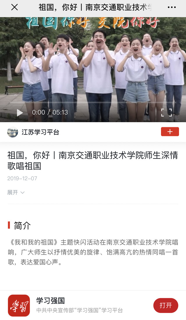 【學習強國】祖國,你好|南京交通職業(yè)技術(shù)學院師生深情歌唱祖國