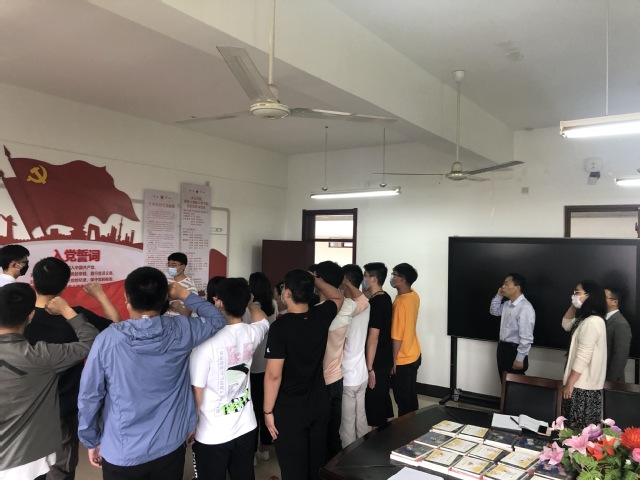 會上首先舉行了新黨員入黨宣誓儀式,黨支部書記黃阿梅老師帶領(lǐng)全體預(yù)備黨員面向黨旗莊嚴(yán)宣誓,與會黨員一起重溫了入黨誓詞,接受黨性教育。接著黃老師對十七名學(xué)生預(yù)備黨員情況作了介紹,并請支部入黨介紹人為新黨員佩戴黨員徽標(biāo),贈送了《習(xí)近平的七年知青歲月》和《我們》兩本書籍。郭子揚同學(xué)代表全體預(yù)備黨員發(fā)言,講述了自己在新冠肺炎疫情防控期間參加抗疫志愿服務(wù)的歷程和感想,表示要在今后的工作中發(fā)揚抗疫精神,更好地發(fā)揮黨員先鋒模范作用。