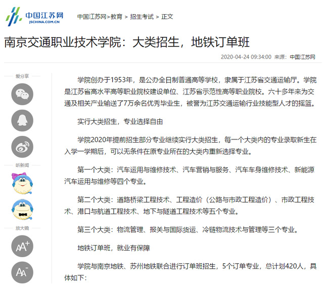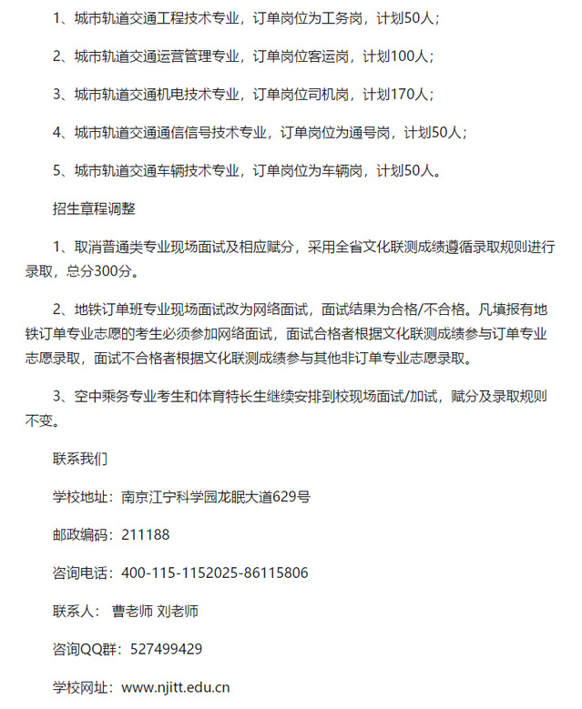 【中國(guó)江蘇網(wǎng)】南京交通職業(yè)技術(shù)學(xué)院:大類招生,地鐵訂單班