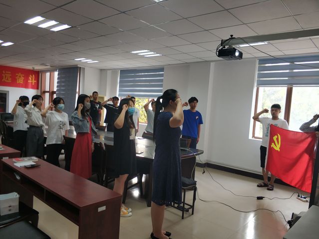 會后,全體黨員在支部書記徐敏帶領下戴上黨徽、重溫入黨誓詞。