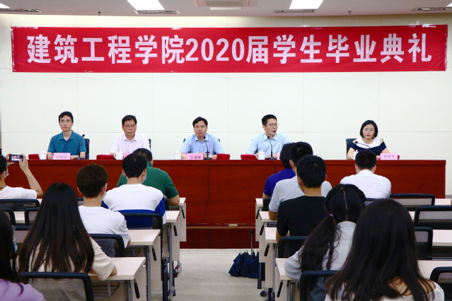 6月5日上午8點(diǎn)40分,建筑工程學(xué)院在圖書館B203隆重舉行2020屆學(xué)生畢業(yè)典禮。鑒于今年新冠肺炎疫情的特殊情況,畢業(yè)典禮采用“線上線下”相結(jié)合方式進(jìn)行。學(xué)校王道峰副院長、建筑工程學(xué)院全體院領(lǐng)導(dǎo)、輔導(dǎo)員、班主任代表及2020屆26名優(yōu)秀畢業(yè)生代表參加了現(xiàn)場(chǎng)畢業(yè)典禮,其他畢業(yè)生、2018級(jí)和2019級(jí)學(xué)生通過網(wǎng)絡(luò)直播方式在線觀看。畢業(yè)典禮由建筑工程學(xué)院張文斌同志主持。