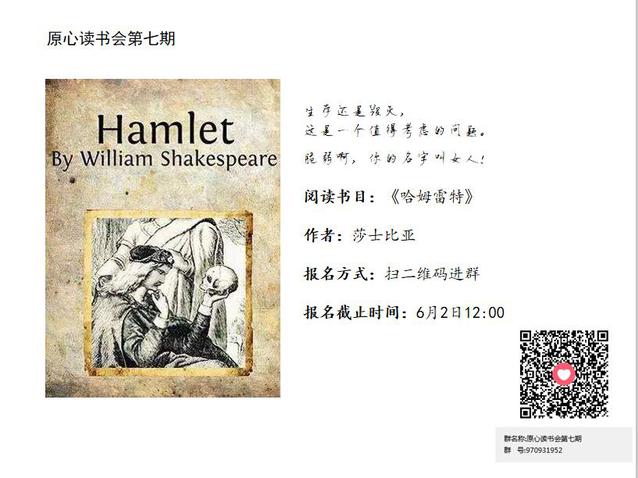 第七期讀書會于6月初啟動,18級、19級兩個年級的20名同學(xué)參加本期讀書會。在領(lǐng)讀老師、黨總支王瓊副書記和原心工作室負(fù)責(zé)人戴萍老師的指導(dǎo)下,同學(xué)們按時完成了規(guī)定書目的閱讀任務(wù)。6月11、18日下午和晚上,分別開展了四個場次的集體分享討論活動。師生在線上聚首,暢談閱讀莎士比亞名著《哈姆雷特》的所思、所感、所悟,各抒己見,在言語化思想過程中,深度整理、加工各自的認(rèn)知和體驗(yàn),在疫情防控的特殊時期,激發(fā)了同學(xué)們不一樣的思考和情感體驗(yàn)。