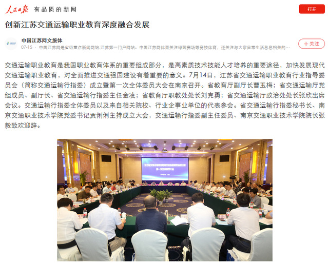 【人民日報江蘇】創(chuàng)新江蘇交通運輸職業(yè)教育深度融合發(fā)展